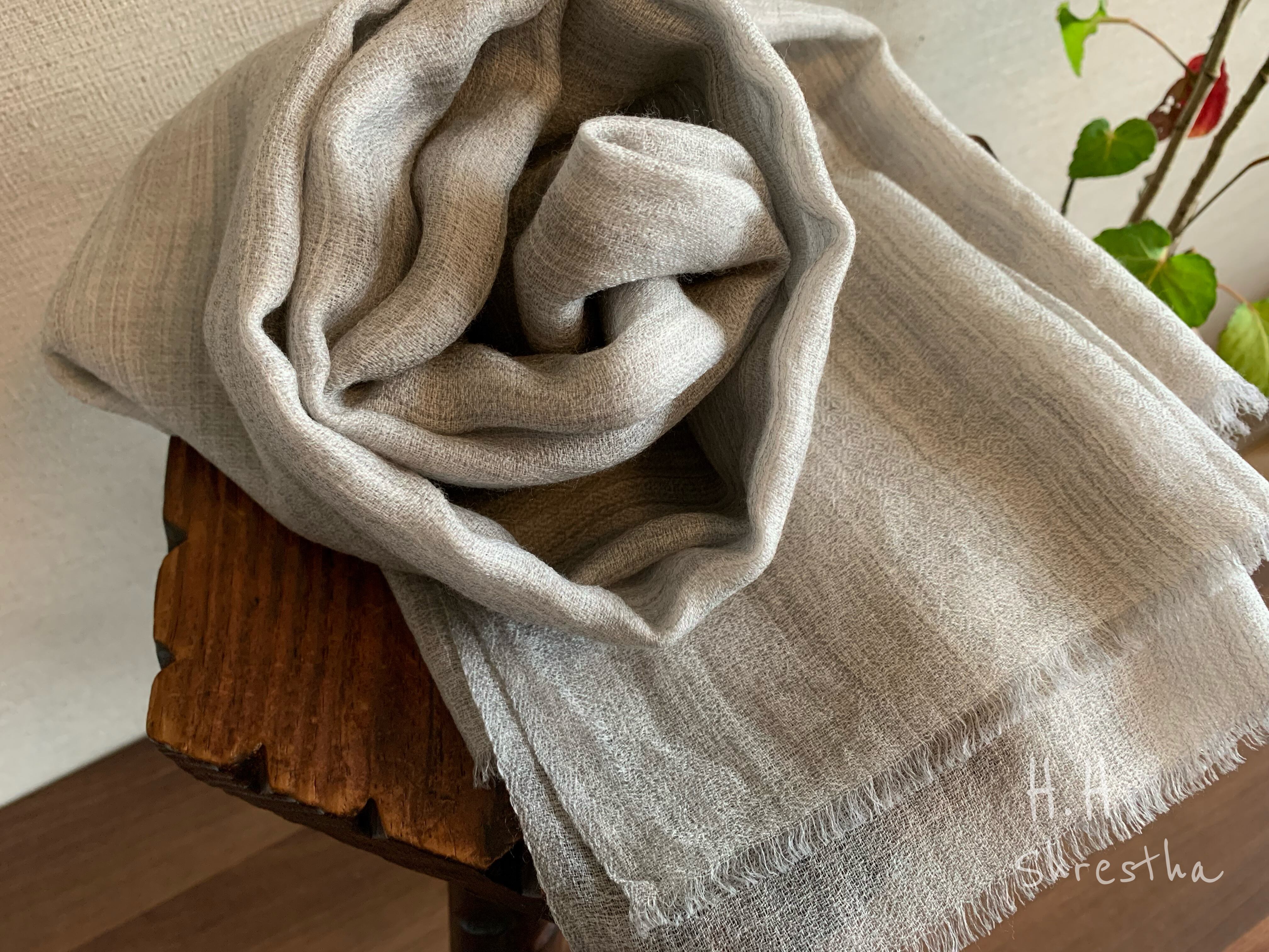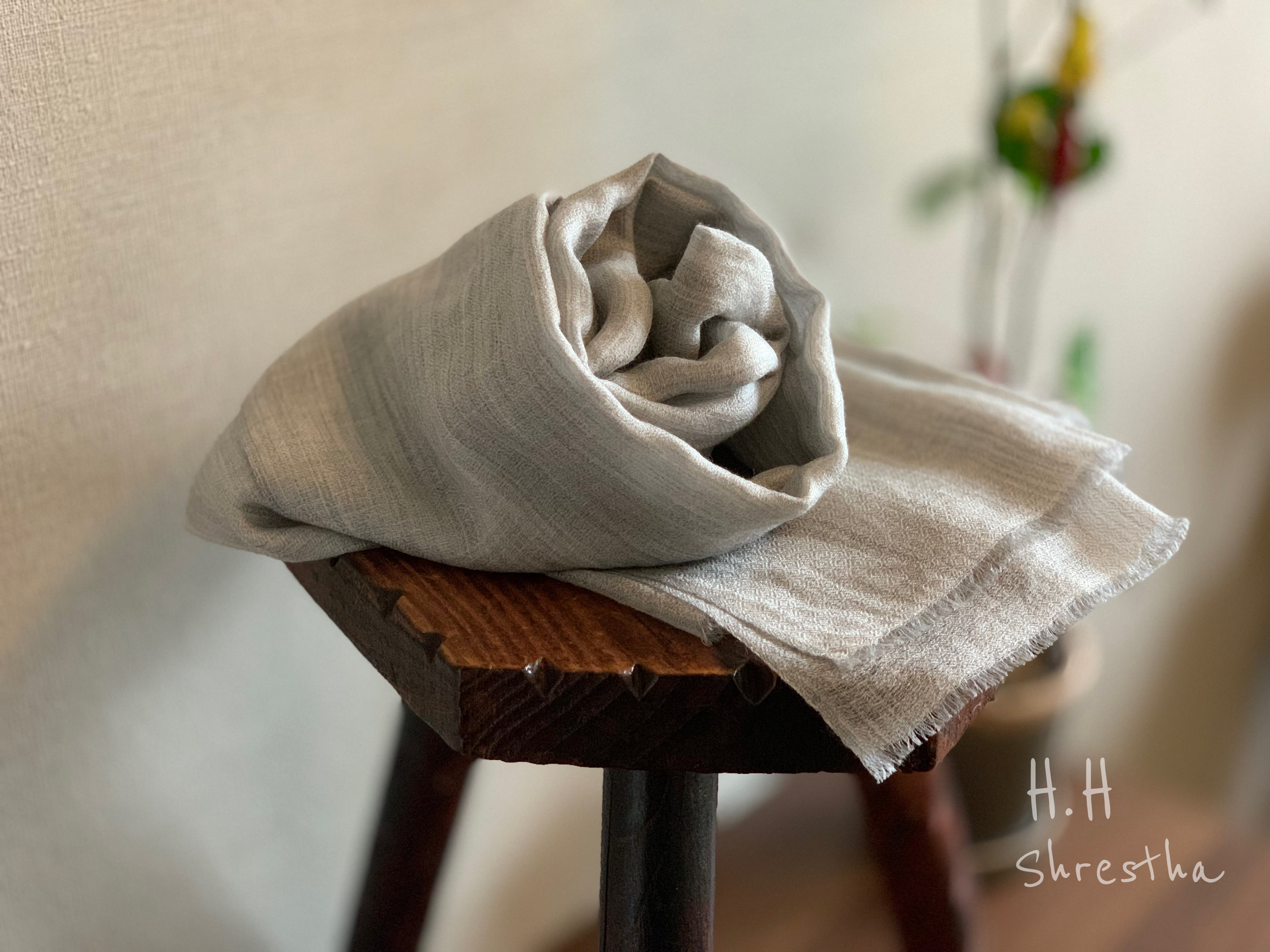 こちらは透き通るほどに繊細で柔らかな糸で織られており、空気を含み温かく手触りの良いストールになります。