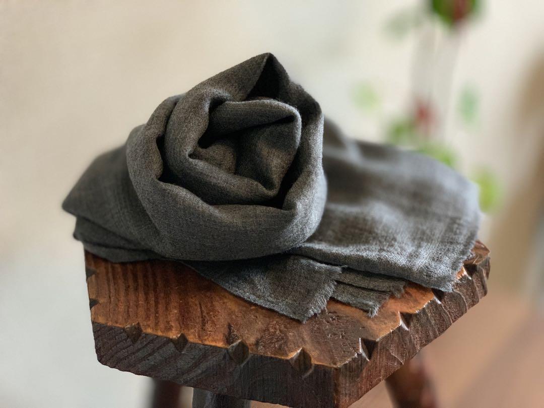 ハンドメイド カシミヤストール ダークグレー