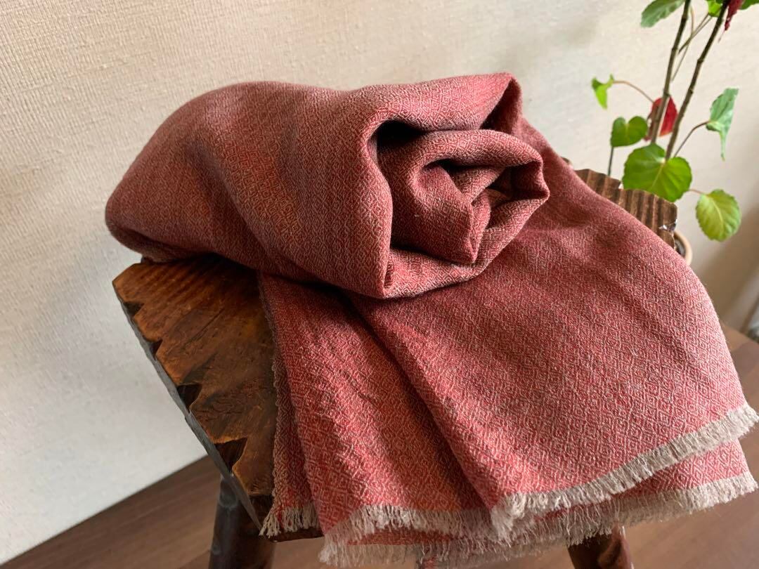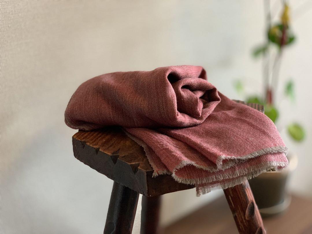 透き通るほどに繊細で柔らかな糸で織られており、空気を含み温かく手触りの良いストールになります。