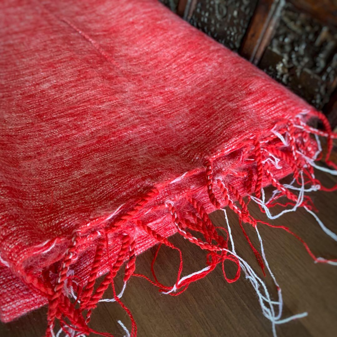 ハンドメイド ブランケット 大判ストール レッドピンク