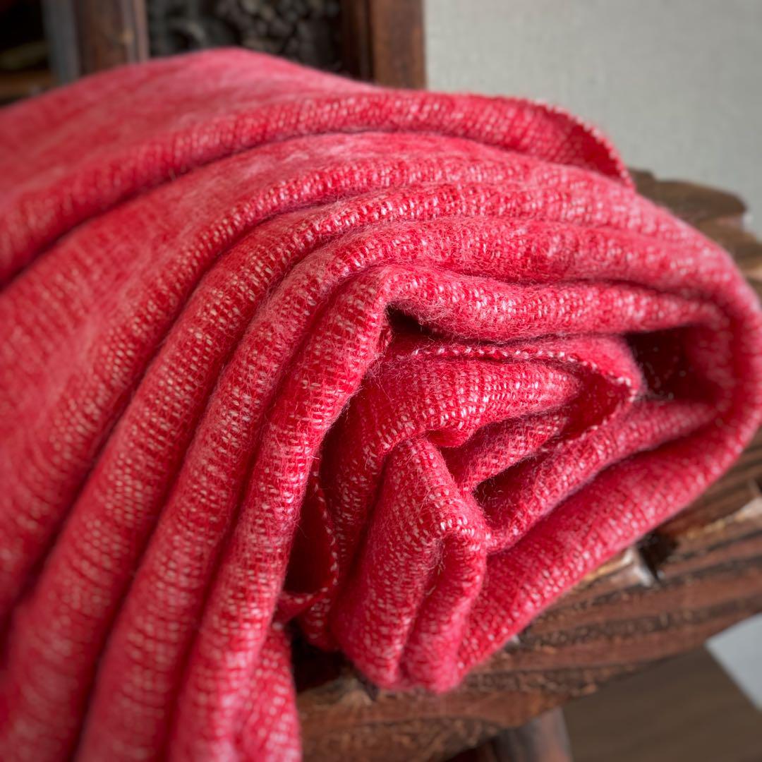 こちらは山羊ウールとコットンで、暖かくふんわり柔らかな手触りを実現したブランケットになります。